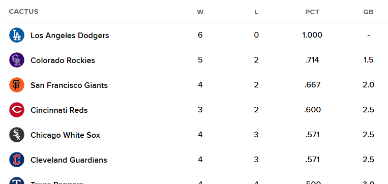 And the Rockies are in second place. Pretty good start!